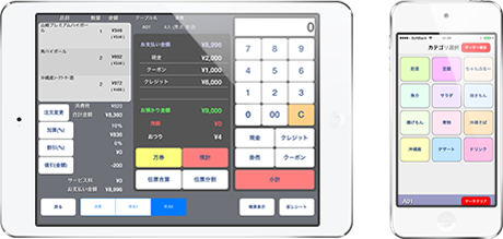 LORS-POS はPOS レジ本体にiPad を、ハンディーの代わりにiPod touch を使う上、サーバが無くても運用できることから導入の為の初期費用、維持費用を抑えることができる上、従来のPOSレジ機能を失うこともありません。